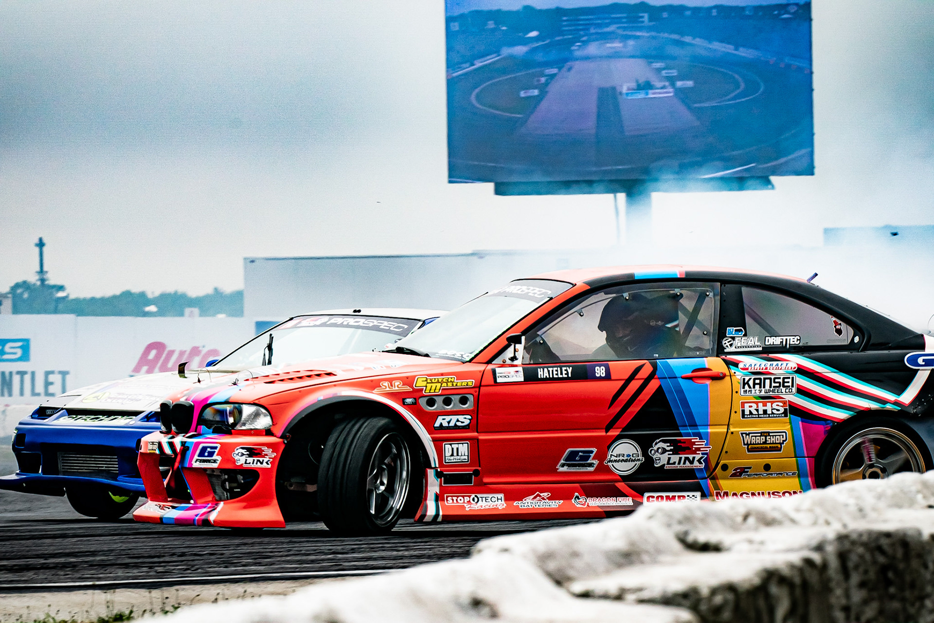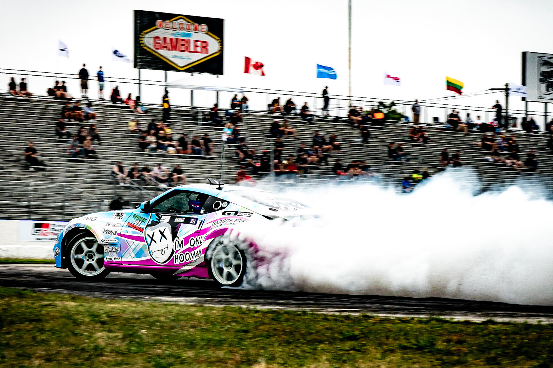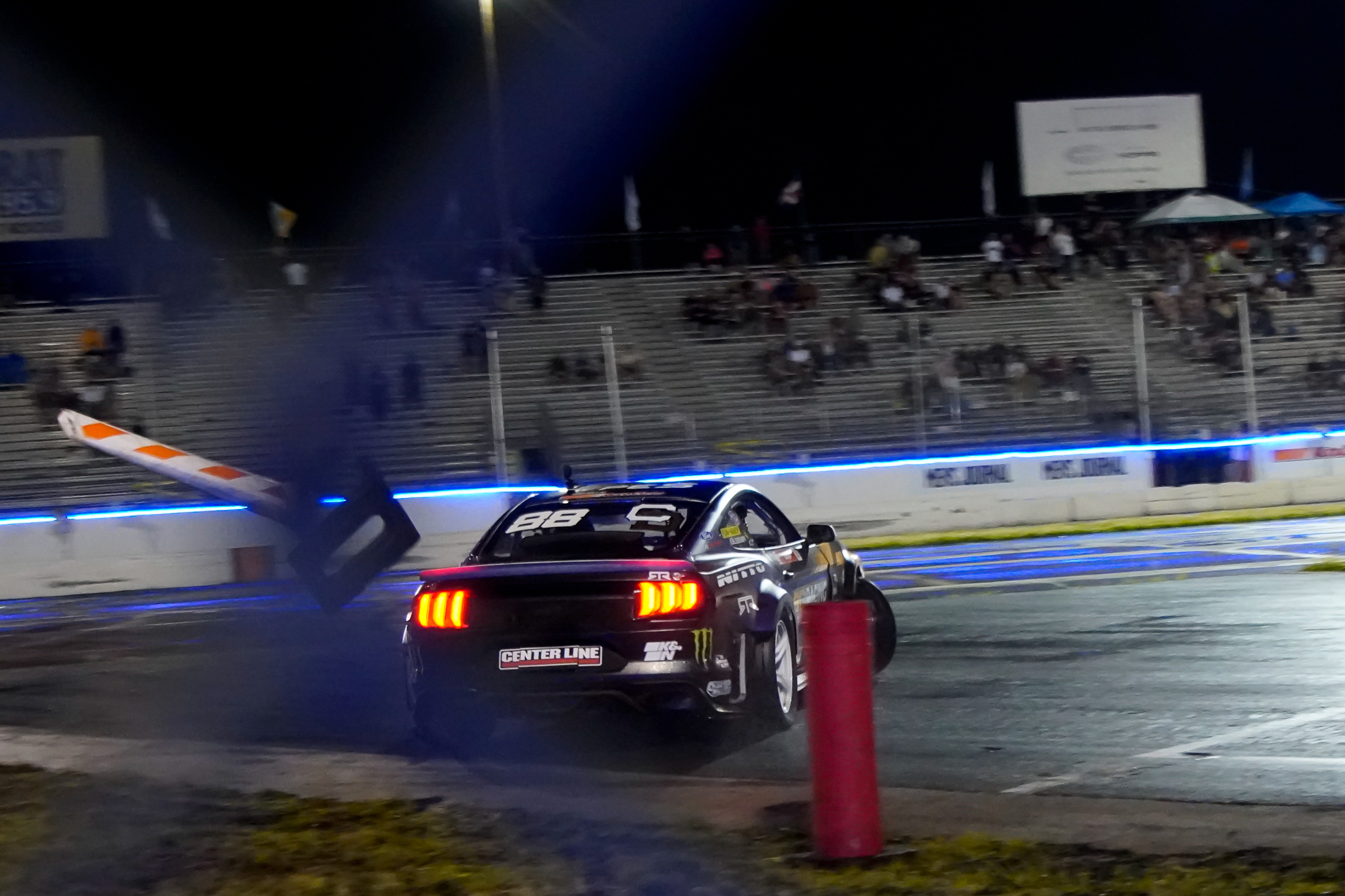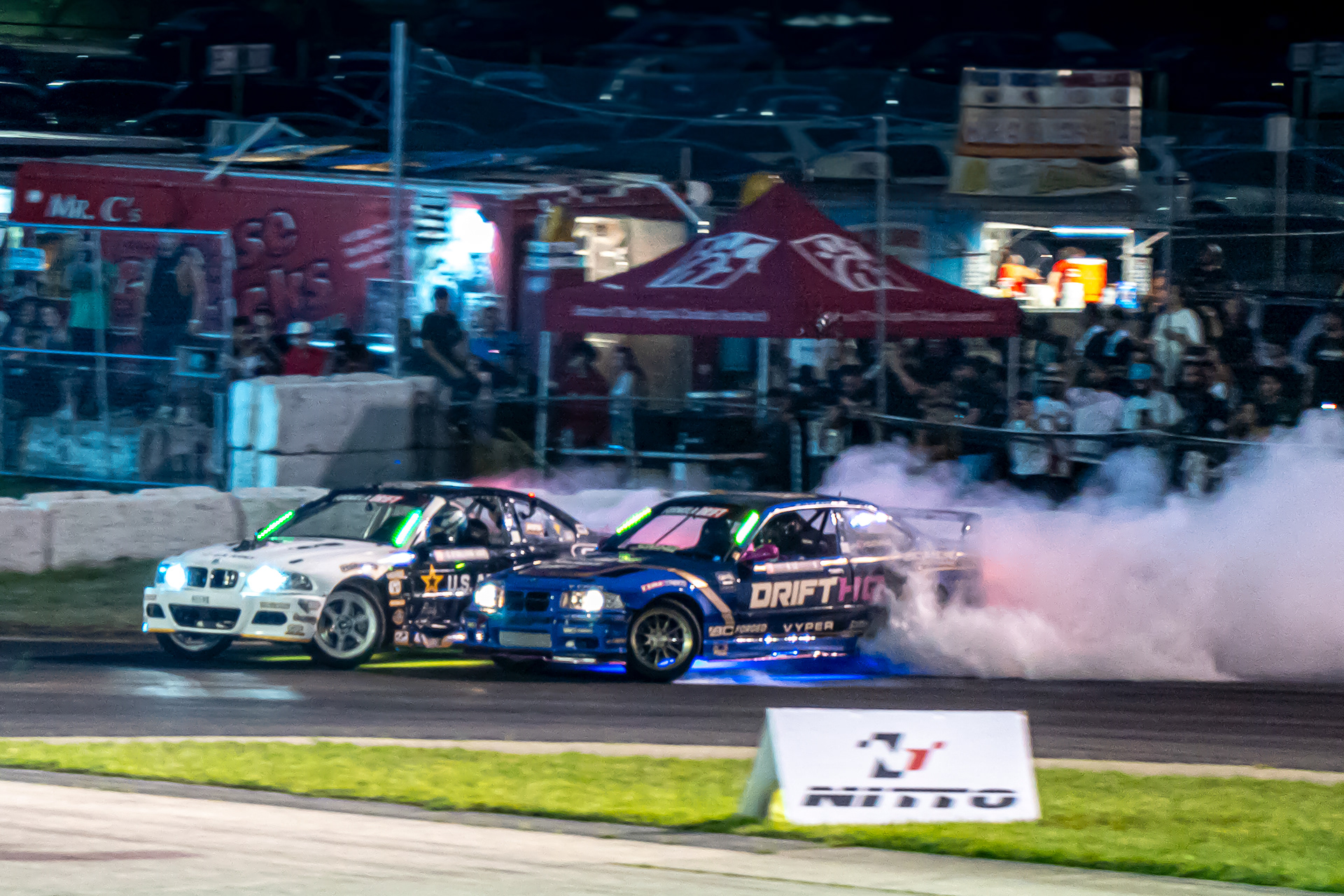 All of these were taken at Formula Drift New Jersey in the past few years. The first set is James Deane's epic car launch on top of Rome Charpentier in June 2025, taken with my 70-200mm at the top of the stands. Scroll through to see some of my favorites.