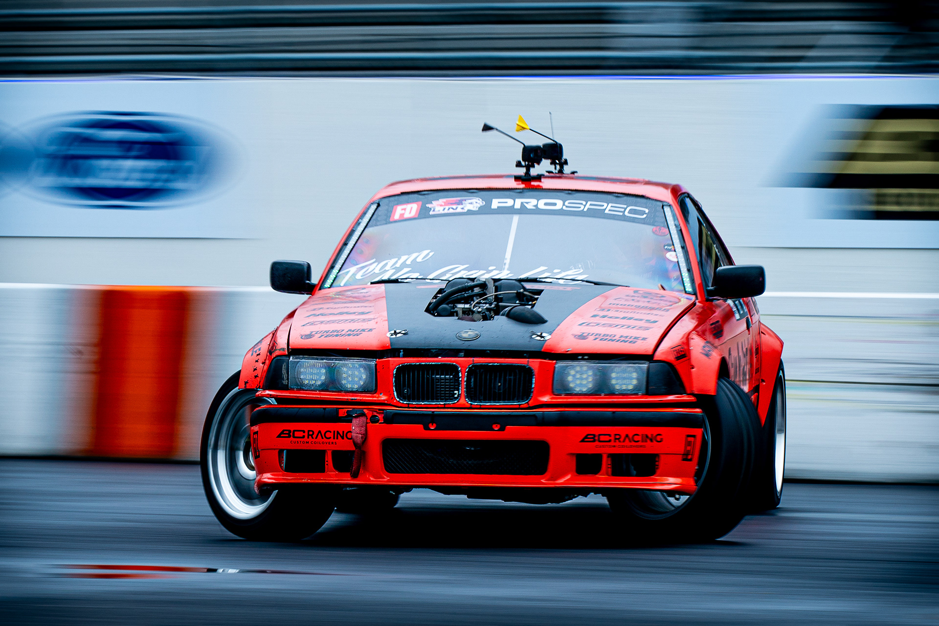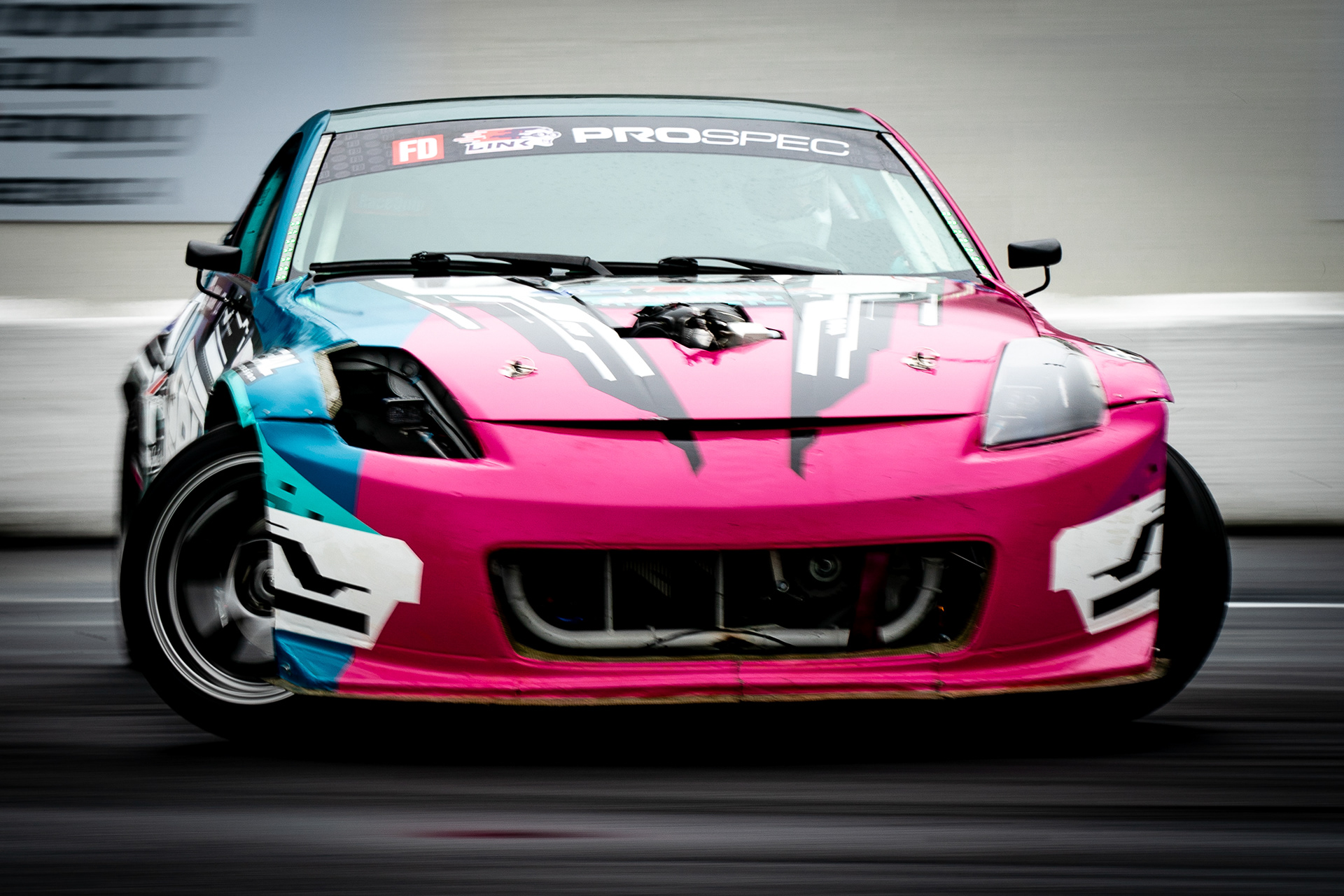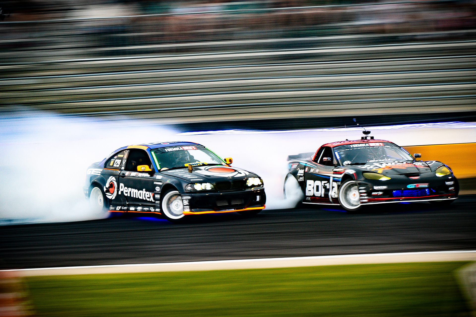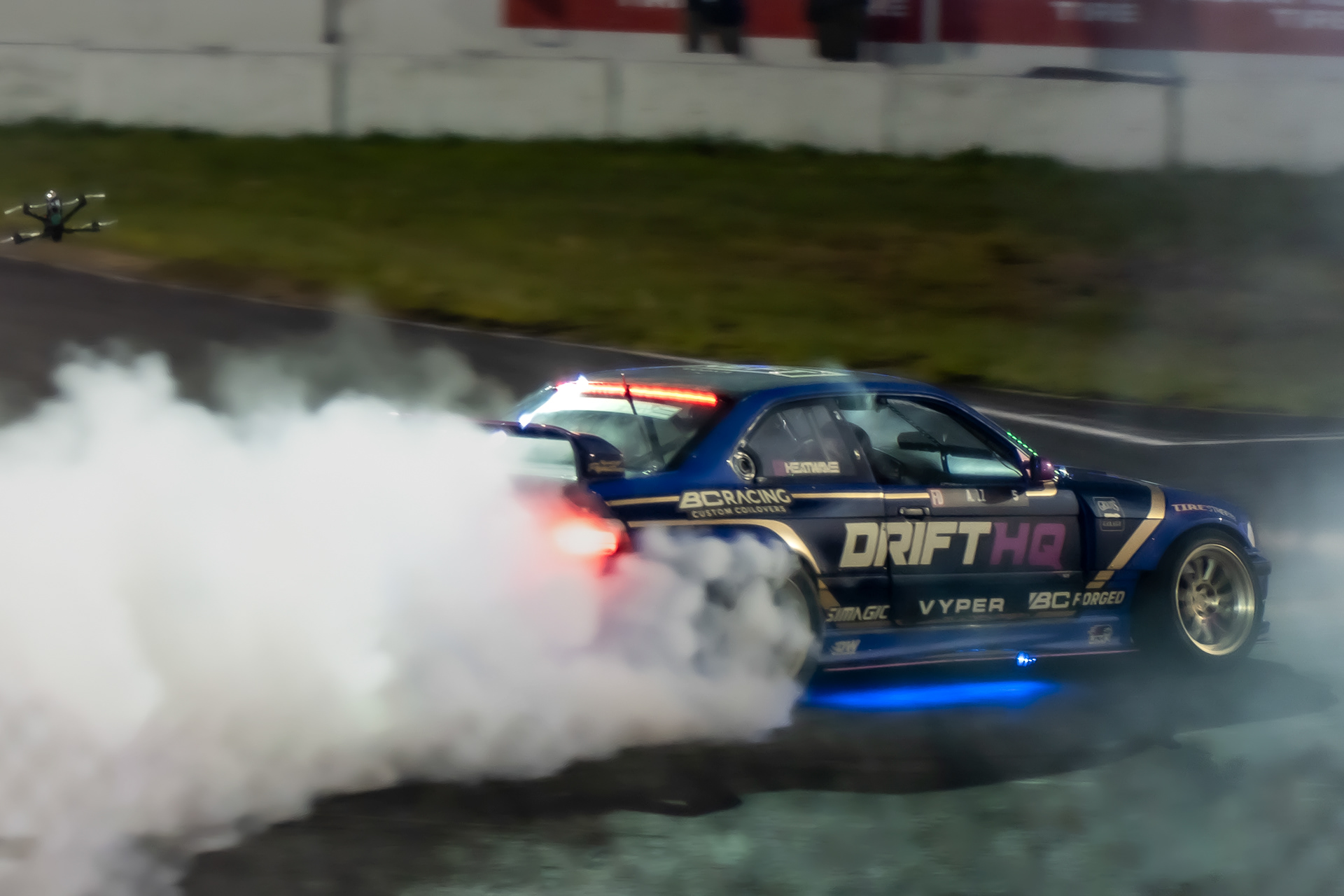 All of these were taken at Formula Drift New Jersey in the past few years. The first set is James Deane's epic car launch on top of Rome Charpentier in June 2025, taken with my 70-200mm at the top of the stands. Scroll through to see some of my favorites.