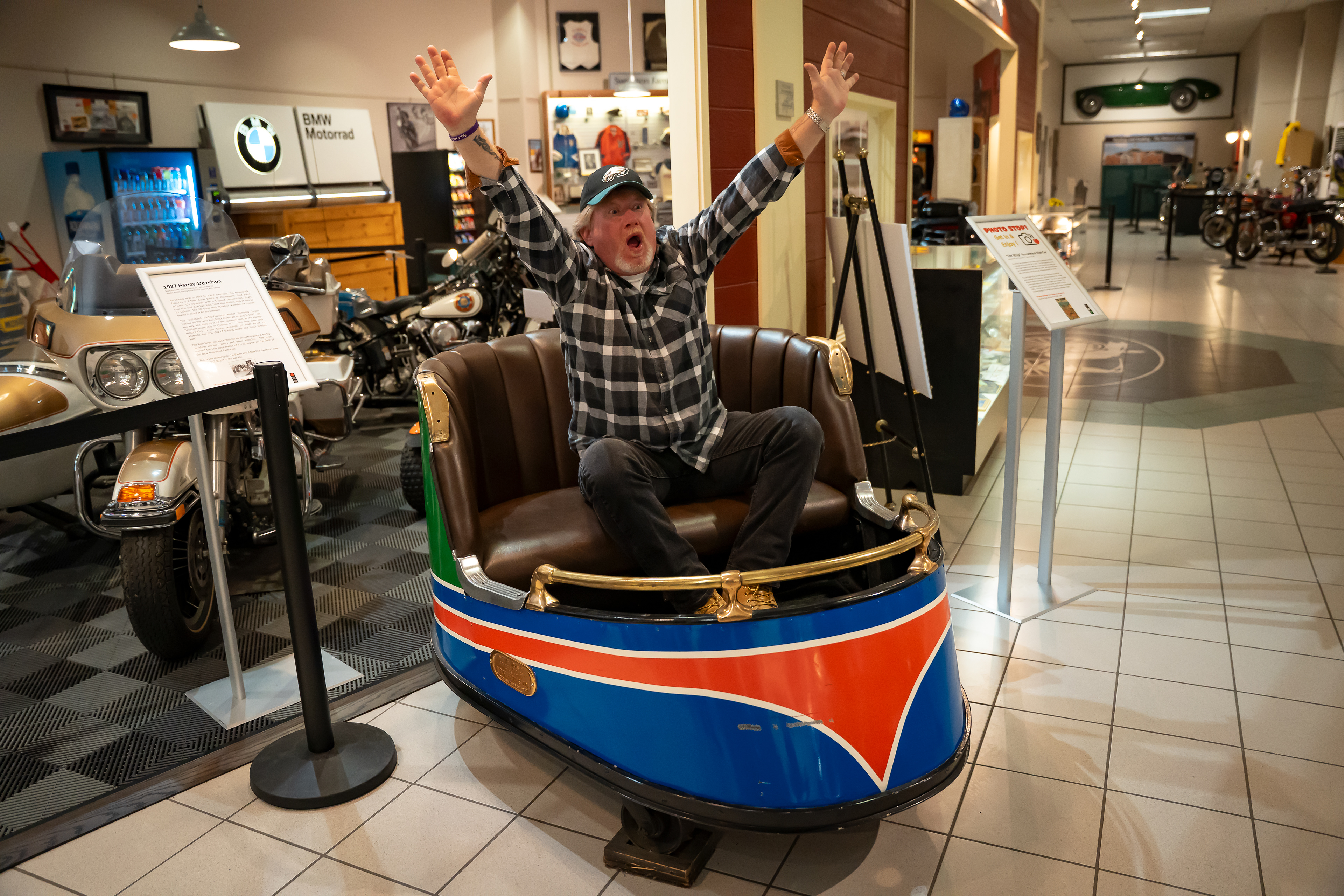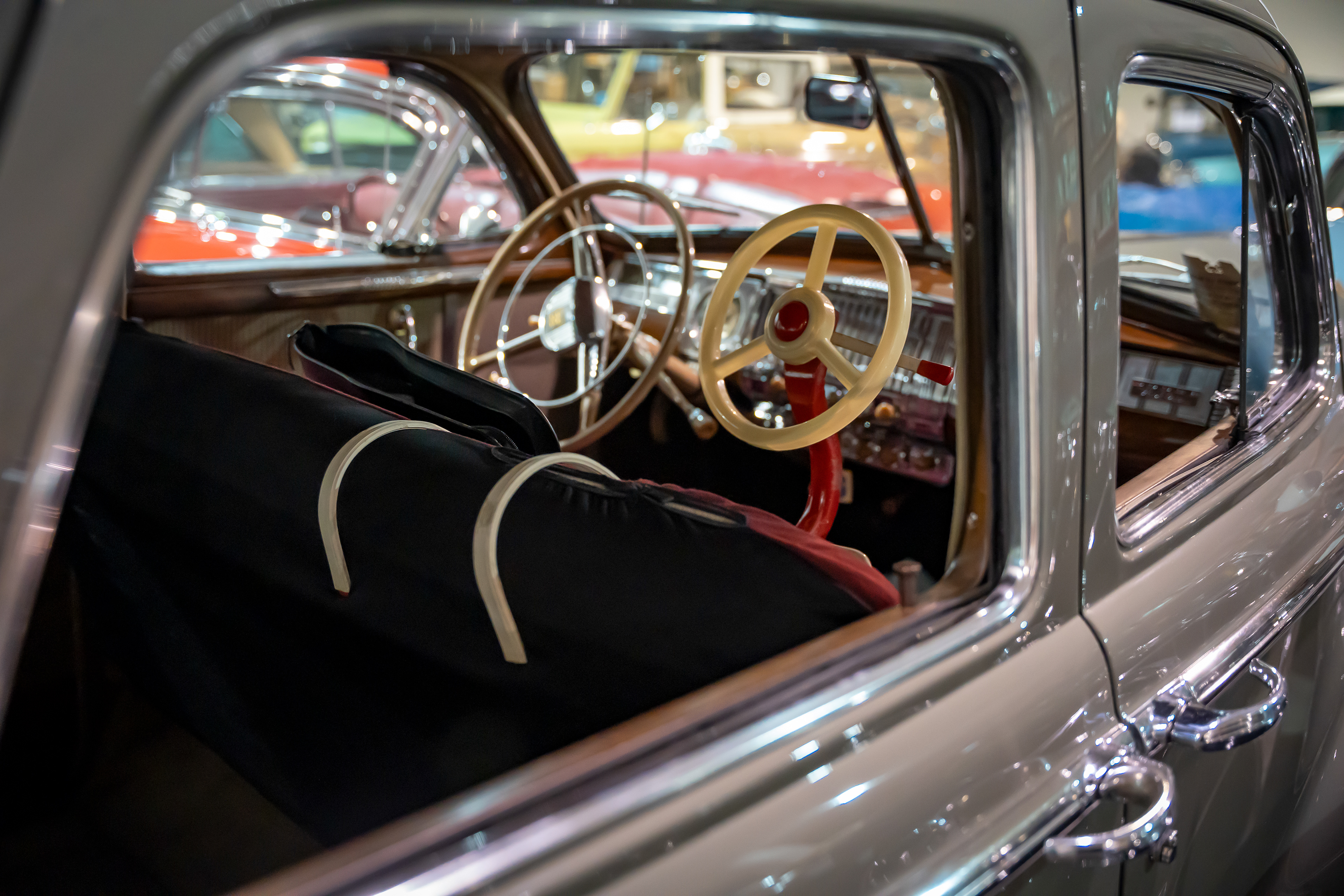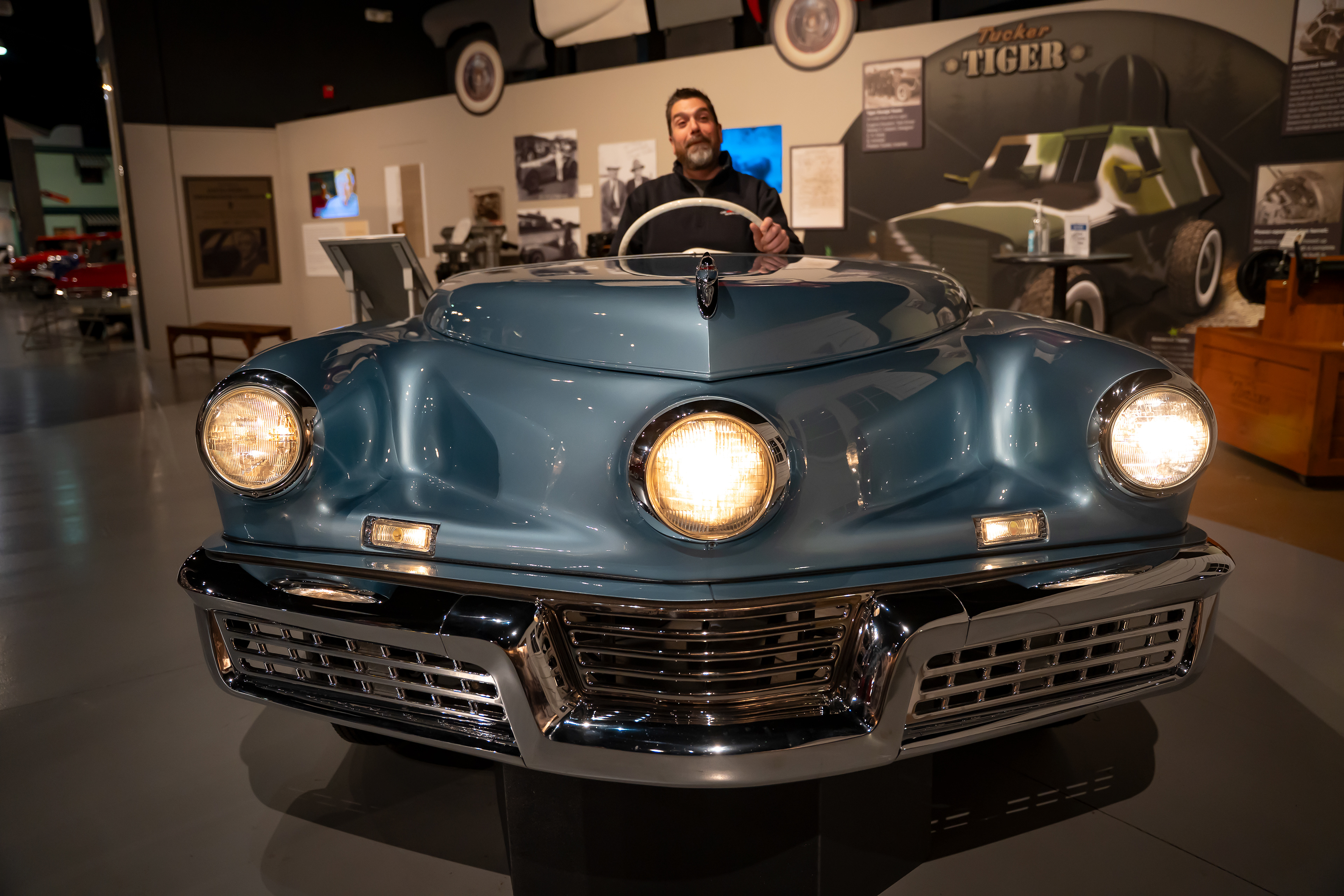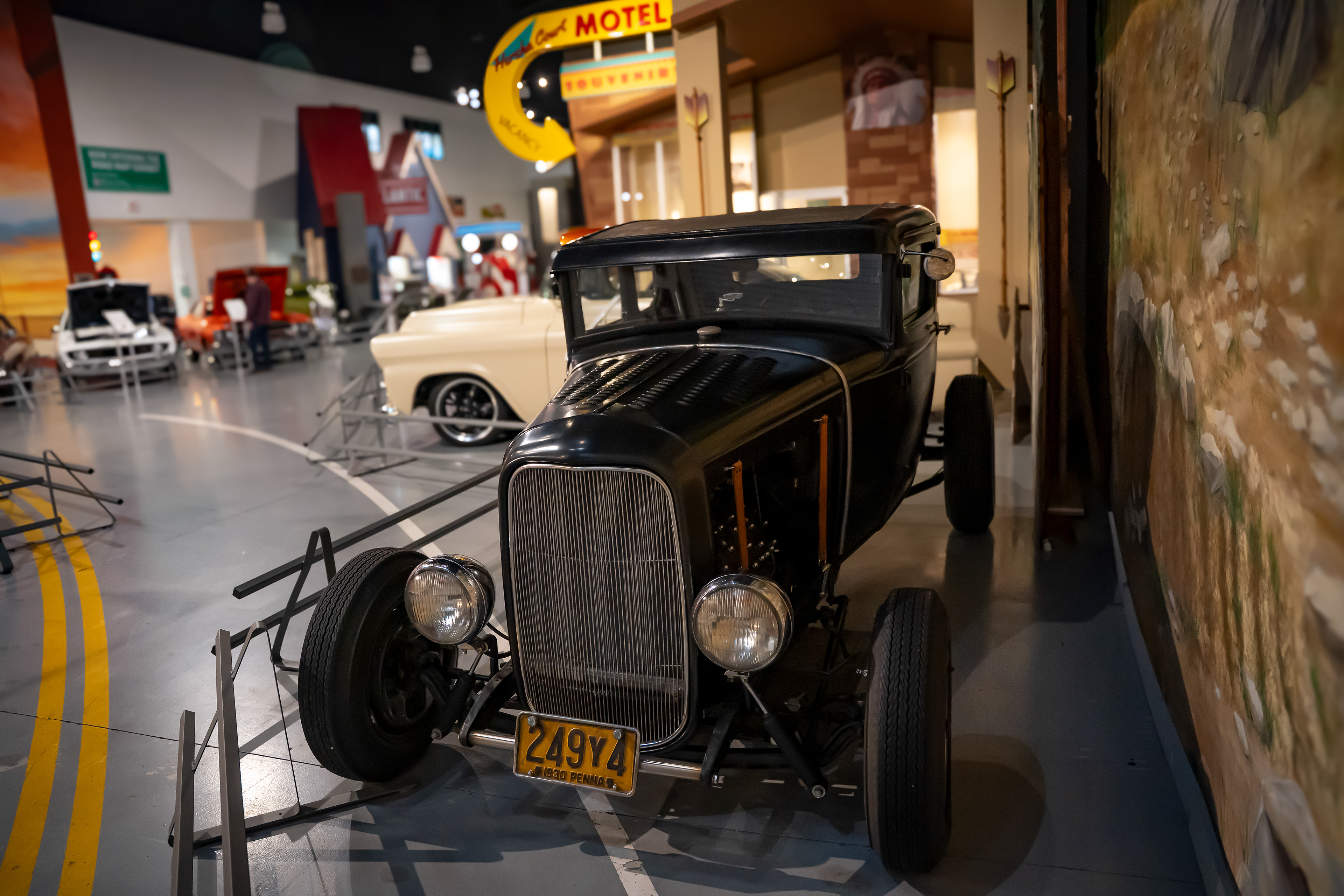 In January 2026 we had a chance to visit America’s Transportation Experience at the AACA Museum in Hershey, Pa. This museum has over 275 permanent vehicles with exhibits that change every few months. The featured exhibits were Old School Rods and Customs, Mustang Legacy series, and a Saab showroom. The staff is largely made up of volunteers who are passionate and knowledgable. We were warmly greeted by Steve who saw my camera and allowed me to get a closer look. Throughout our visit he would pop-up to explain some car facts and history, or stories about the person who drove it. He even gave us a private viewing of cars in the back staging area. The museum has a vast collection of all modes of transportation. Their showrooms feature anything from Model Ts and Tuckers to muscle cars and hot rods. They have trucks, busses, bikes and pedal cars. There's a train room, an old Valentine dining car, and cases upon cases of hood ornaments. There are also so many interactive exhibits that make this a great museum for adults and kids alike.